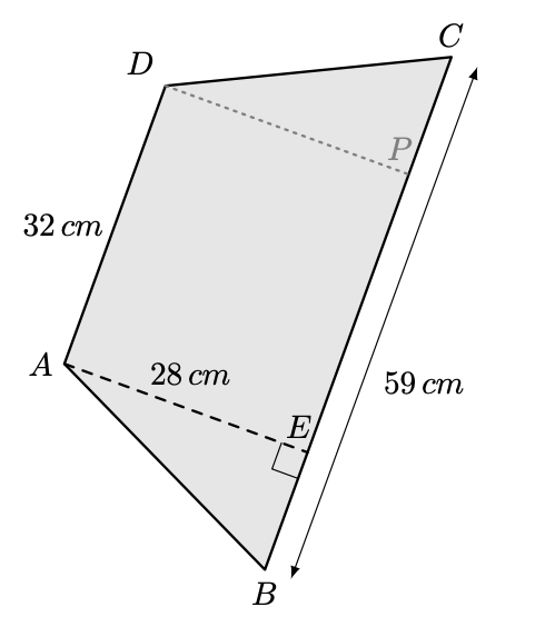 - $\overline{A D}=32 \mathrm{~cm} \mathrm{e} \overline{B C}=59 \mathrm{~cm}$