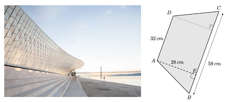 A figura seguinte, à esquerda, é uma fotografia da fachada do Museu de Arte, Arquitetura e Tecnologia (MAAT), situado na frente ribeirinha da zona histórica de Belém, em Lisboa.