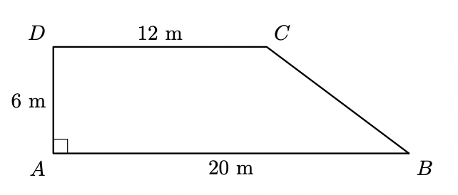 O trapézio $[A B C D]$ da figura seguinte, de bases $[A B]$ e $[D C]$, retângulo em $A$, é um esquema da horta.