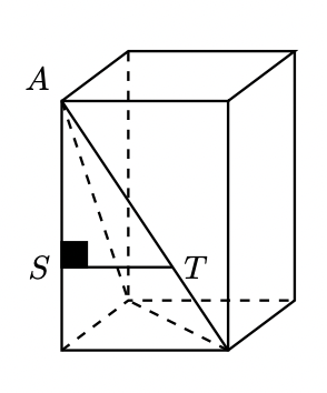 Como o plano $S T R$ é paralelo ao plano $E F G$, e o plano $E F G$ é perpendicular ao plano $A F G$, então também o plano $S T R$ é perpendicular ao plano $A F G$, ou seja, o ângulo $A S T$ é reto, pelo que o triângulo $[A S T]$ é um triângulo retângulo em $S$, pelo que podemos, recorrendo ao Teorema de Pitágoras, afirmar que: