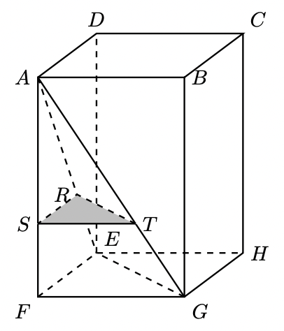 Os vértices $S, T$ e $R$ da pirâmide $[A S T R]$ pertencem, respetivamente, às arestas $[A F],[A G]$ e $[A E]$ da pirâmide $[A F G E]$