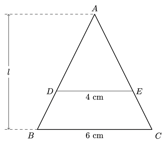 - $l$ é a altura do triângulo $[A B C]$ relativa à base $[B C]$