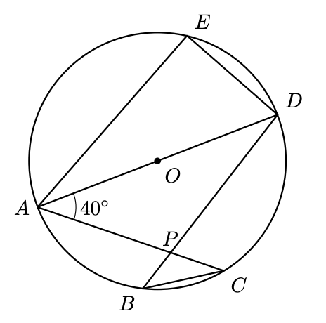 - os pontos $A, B, C, D$ e $E$ pertencem à circunferência
