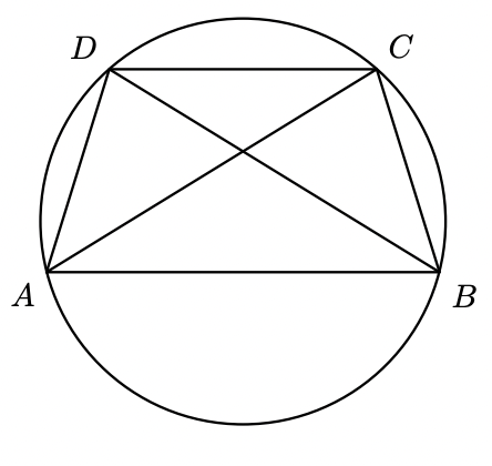 Utilizando a propriedade enunciada, temos que, como $[A B C D]$ é um trapézio inscrito na circunferência, então