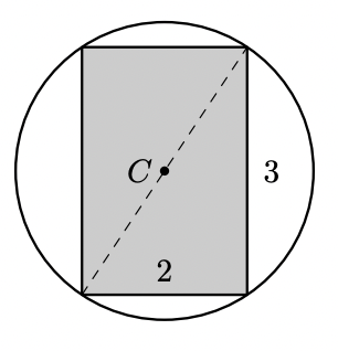 $$d^{2}=2^{2}+3^{2} \Leftrightarrow d^{2}=4+9 \Leftrightarrow d^{2}=13 \underset{d>0}{\Rightarrow} d=\sqrt{13}$$