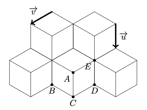 Qual é a imagem do ponto $E$ pela translação de vetor $\vec{u}+\vec{v}$ ?