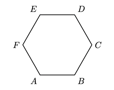 Na figura seguinte, está representado o hexágono regular $[A B C D E F]$.
