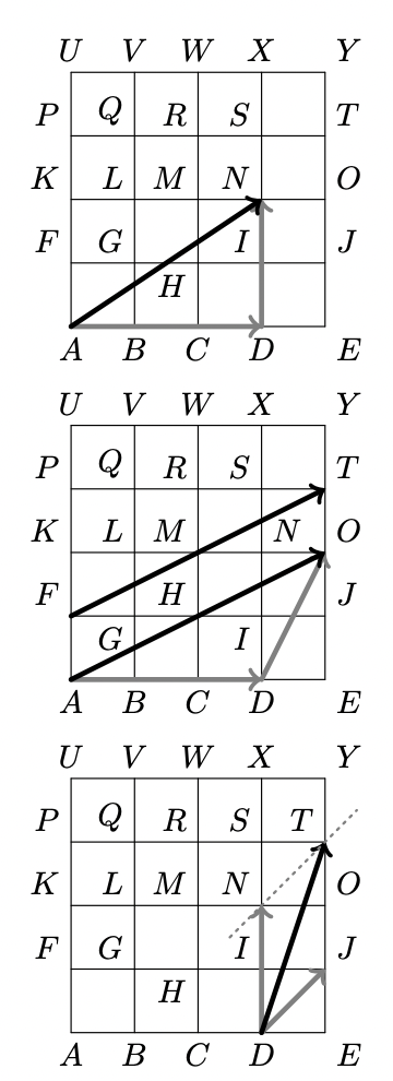 (3) Identificando os vetores $\overrightarrow{D N}$ e $\overrightarrow{D J}$ e usando a regra do paralelogramo para fazer a soma, podemos observar que: