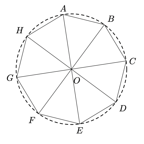 Na figura $[A B C D E F G H]$ é um octógono regular inscrito na circunferência de centro $O$