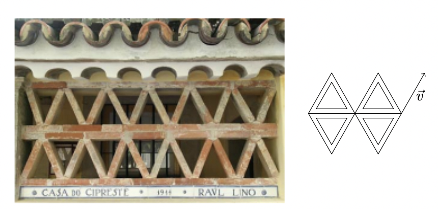 À direita, estão a representação geométrica de parte do pormenor arquitectónico e o vector $\vec{v}$