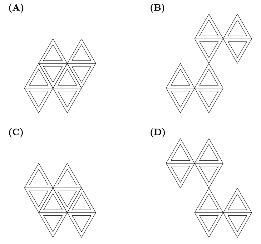 Em qual das alternativas seguintes estão representadas a figura anterior (da direita) e a imagem dessa figura através da translação associada ao vector $\vec{v}$ ?