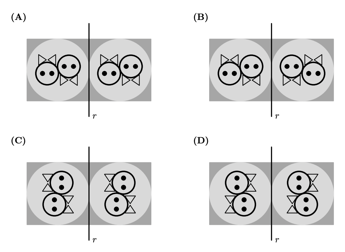 As quatro figuras a seguir representadas foram desenhadas com base nesse símbolo. Em cada uma delas, está desenhada uma recta $r$.