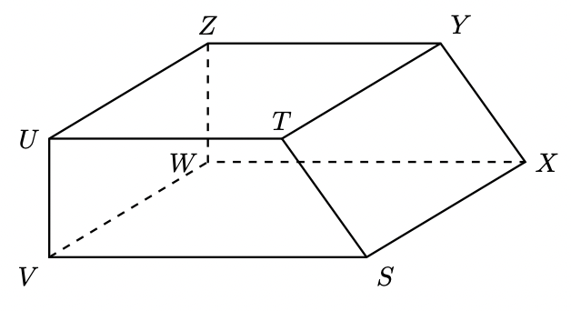 Admite que o volume do prisma $[S T U V W X Y Z]$ é $1250 \mathrm{~cm}^{3}$.