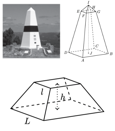 - $L$ é a aresta da base maior do tronco de pirâmide;