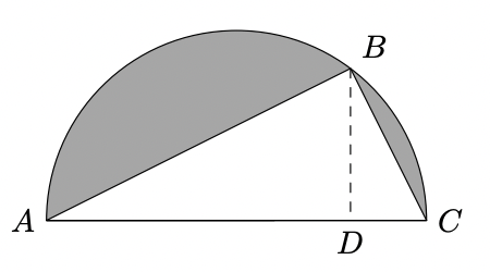 Tendo em conta os dados do enunciado podemos calcular $A_{S C}$, a área do semicírculo, como