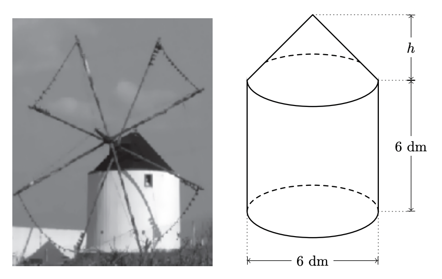 - a altura do cilindro é igual ao diâmetro da base e é igual a $6 \mathrm{dm}$