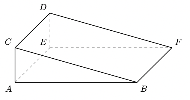 Na figura seguinte, está representado o prisma triangular reto $[A B C D E F]$