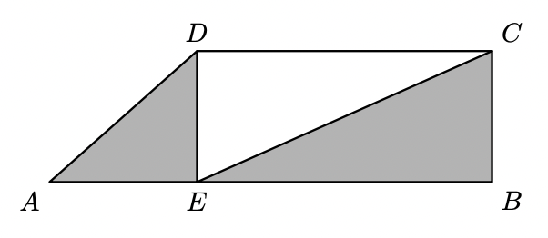 Na figura seguinte, está representado o trapézio rectângulo $[A B C D]$. O ponto $E$ pertence ao lado $[A B]$