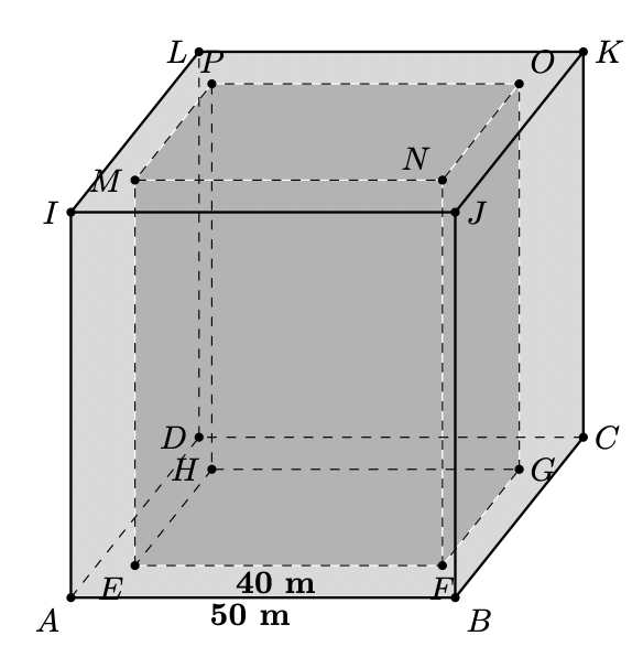 A cavidade que vai ficar com a terra tem a forma de um prisma quadrangular reto, com a mesma altura da floreira e $40 \mathrm{~cm}$ de aresta da base.