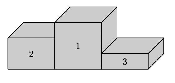 - A altura do prisma referente ao $3 .^{\circ}$ lugar é $\frac{1}{3}$ da altura do prisma referente ao $1 .^{\circ}$ lugar.