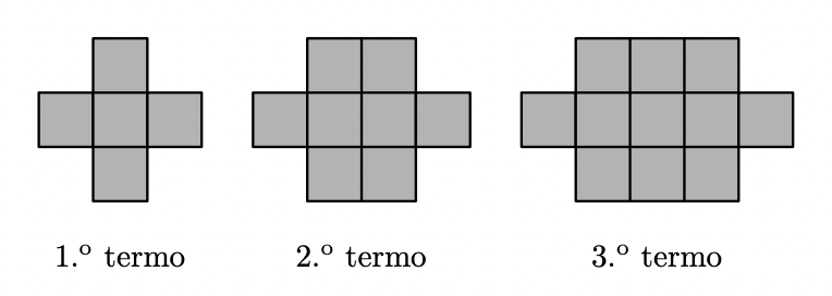 Na figura seguinte, estão representados os três primeiros termos de uma sucessão de figuras formadas por quadrados geometricamente iguais $(\square)$.