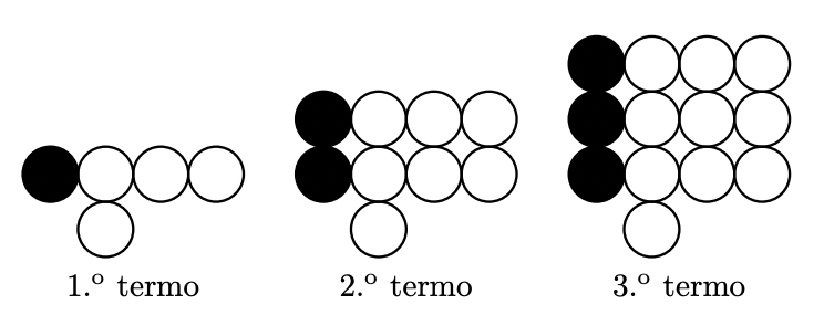 Na figura seguinte, estão representados os três primeiros termos de uma sequência de conjuntos de bolas que segue a lei de formação sugerida na figura.