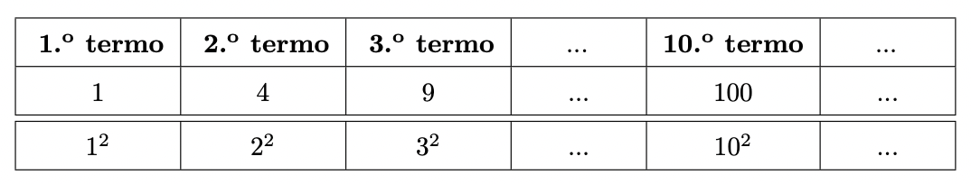 Identificando a regularidade dos termos da sequência, podemos observar que cada termo corresponde ao quadrado da sua ordem (ver tabela).