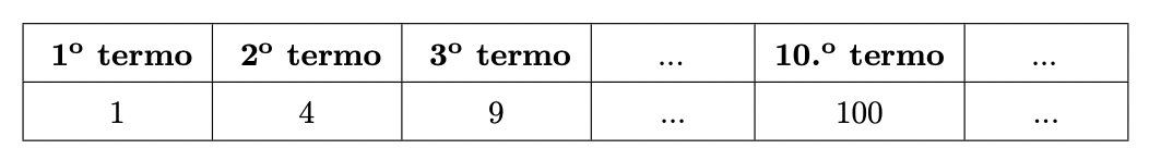 Na tabela seguinte, estão indicados alguns termos de uma sequência de números naturais que segue a lei de formação sugerida nessa tabela.