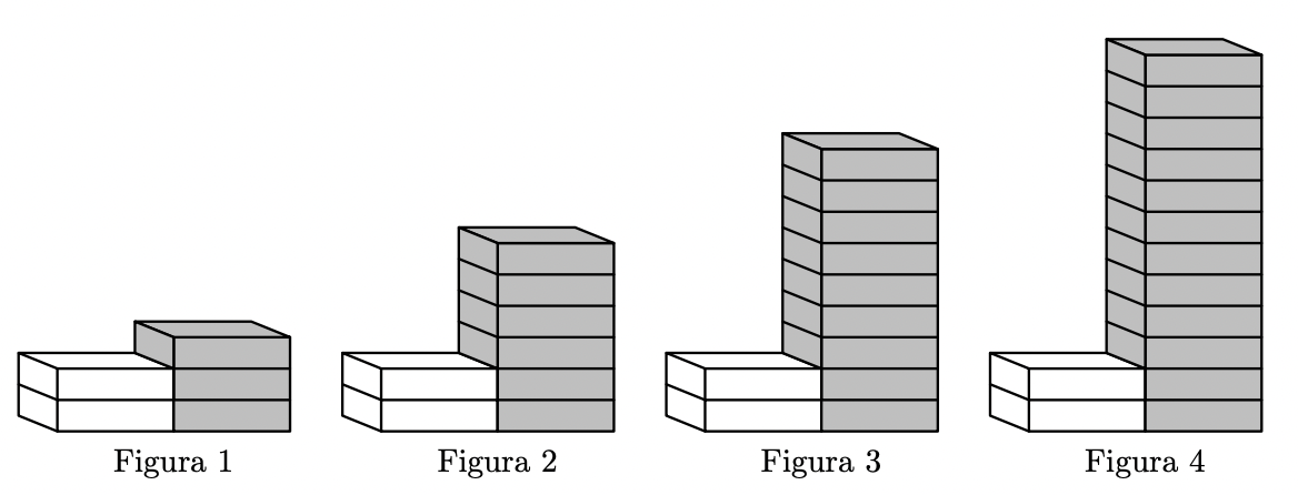 Observa a seguinte sequência de figuras, onde estão empilhados azulejos brancos e cinzentos, segundo uma determinada regra.