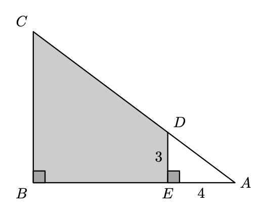 - $\overline{A E}=4$ e $\overline{D E}=3$;