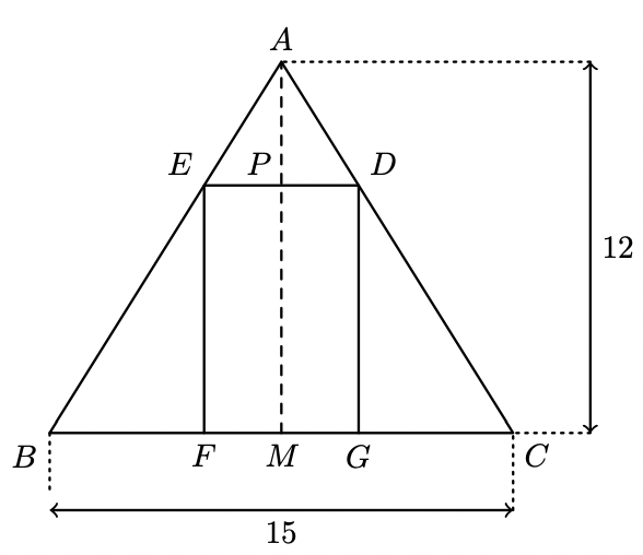 - os pontos $F$ e $G$ pertencem ao lado $[B C]$, o ponto $E$ pertence ao lado $[A B]$ e o ponto $D$ pertence ao lado $[A C]$;
