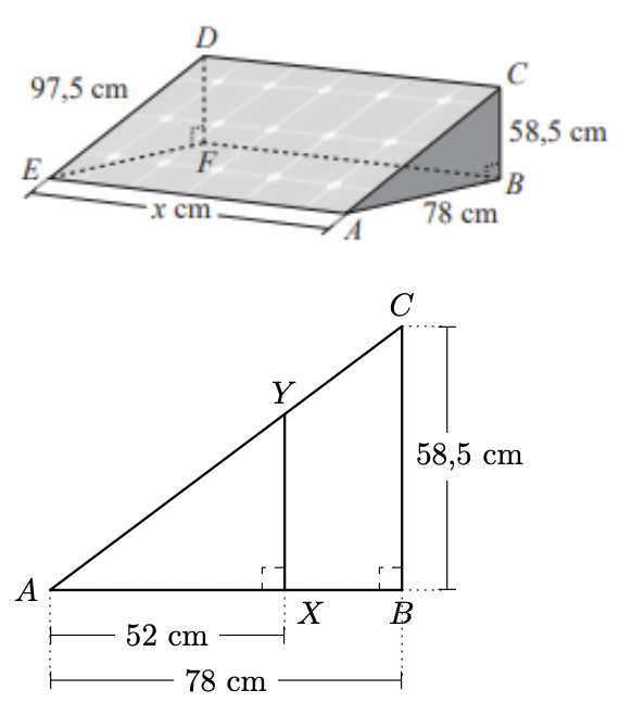 - $\overline{A B}=78 \mathrm{~cm}, \overline{B C}=58,5 \mathrm{~cm}$ e $\overline{A X}=52 \mathrm{~cm}$.