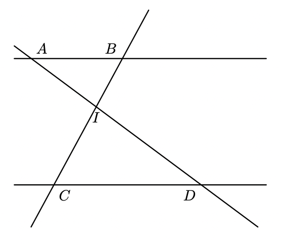 - as retas $A D$ e $B C$ se intersectam no ponto $I$;