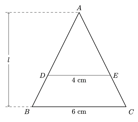 - $l$ é a altura do triângulo $[A B C]$ relativa à base $[B C]$