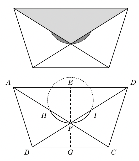 - o ponto $F$ é o ponto de interseção das diagonais do trapézio