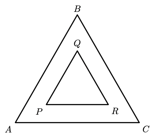 O triângulo $[P Q R]$ é uma redução do triângulo equilátero $[A B C]$, de razão 0,5