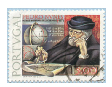 Neste ano comemoram-se os 500 anos do nascimento de Pedro Nunes. Há alguns anos, os correios editaram o selo reproduzido na figura ao lado, alusivo a este matemático português.