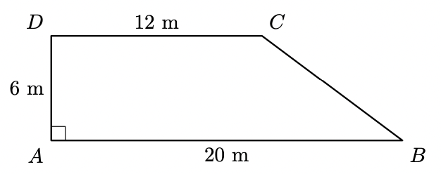 O trapézio $[A B C D]$ da figura seguinte, de bases $[A B]$ e $[D C]$, retângulo em $A$, é um esquema da horta.