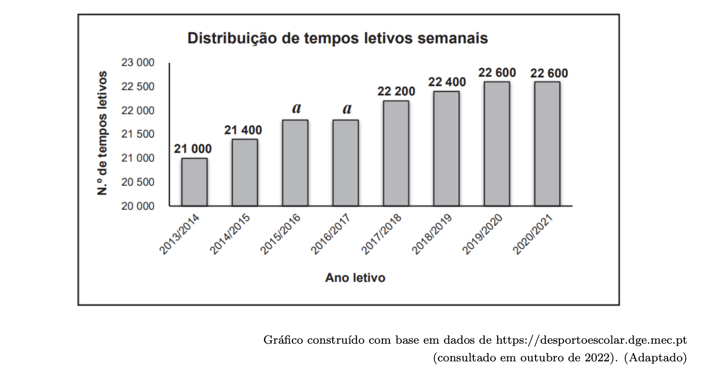 - os anos letivos 2015/2016 e 2016/2017 têm igual número de tempos letivos semanais, $a$, e que $21400<$ $a<22200$;