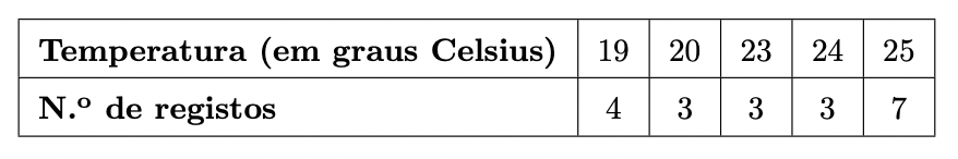 Durante o mês de maio, o António realizou vinte registos da temperatura, em graus Celsius, no pátio da sua escola.