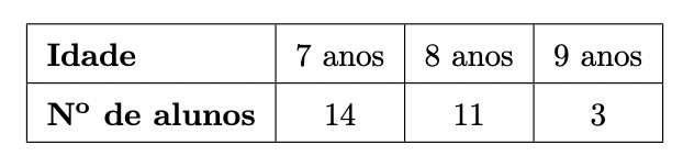 No início do ano letivo, a turma do João tinha 28 alunos. A tabela seguinte apresenta a distribuição das idades desses alunos.