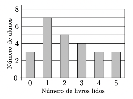 Assim, calculando a média, $\bar{x}$, do número de livros que cada aluno leu, temos