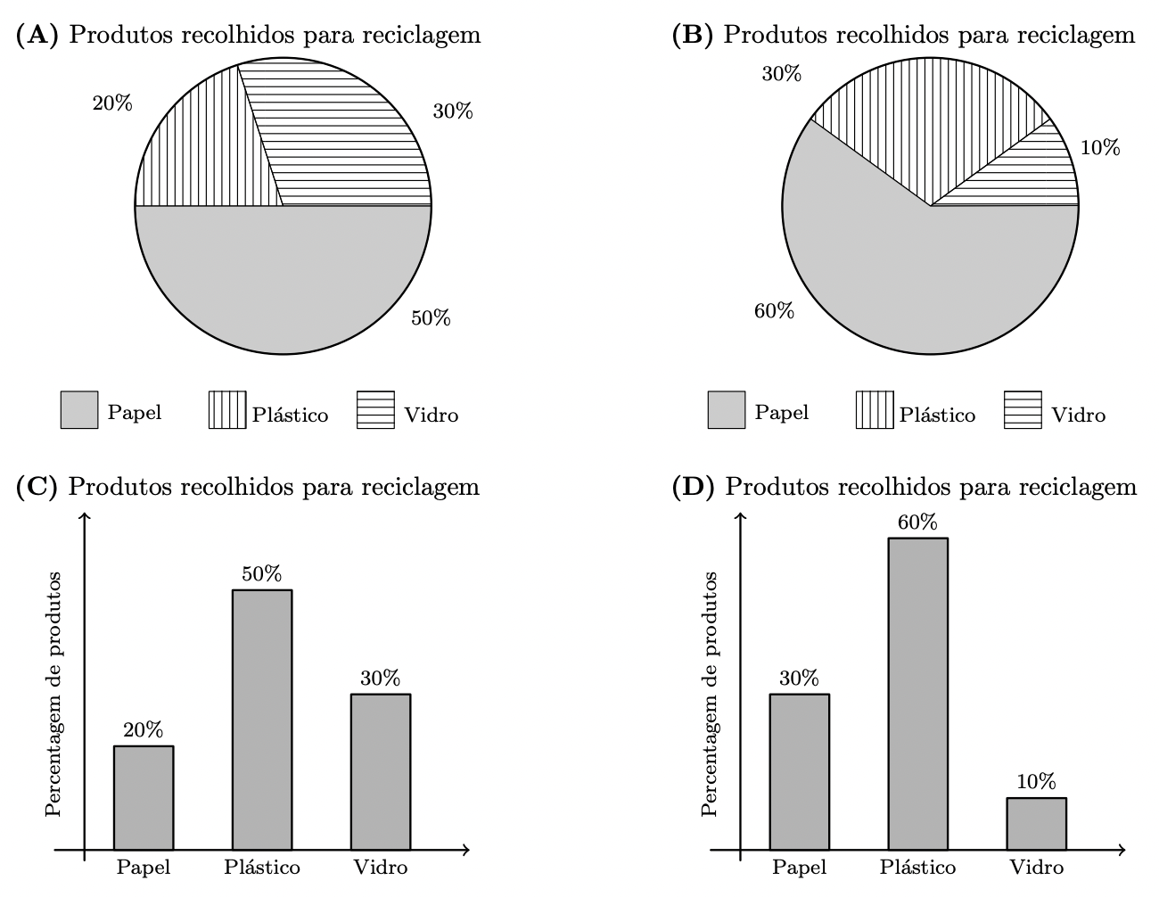 A tabela seguinte apresenta as quantidades, em toneladas, de papel, de plástico e de vidro recolhidas por uma empresa de reciclagem em 2007, 2008 e 2009.