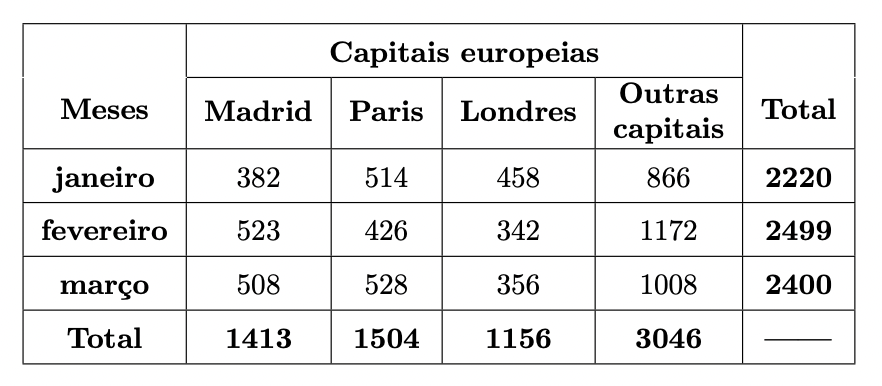 A tabela seguinte mostra o número de viagens vendidas pela agência nos primeiros três meses do ano.