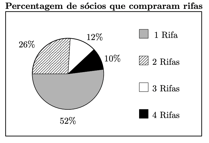 No total existem 50 sócios (ou seja 100%), dos quais 26 % compraram 2 rifas.