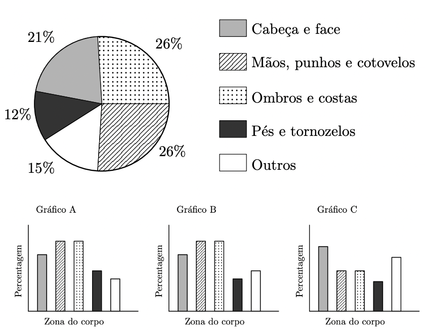 O Gráfico A não corresponde ao diagrama circular, porque no diagrama o setor relativo à lesão Pés e tornozelos